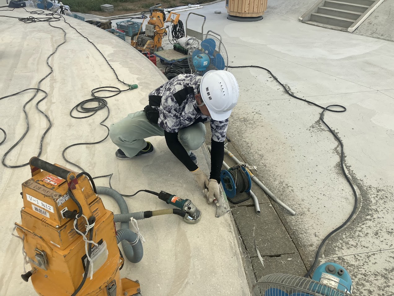 専用のめくり機と研磨機を併用して作業してきれいに仕上げました。